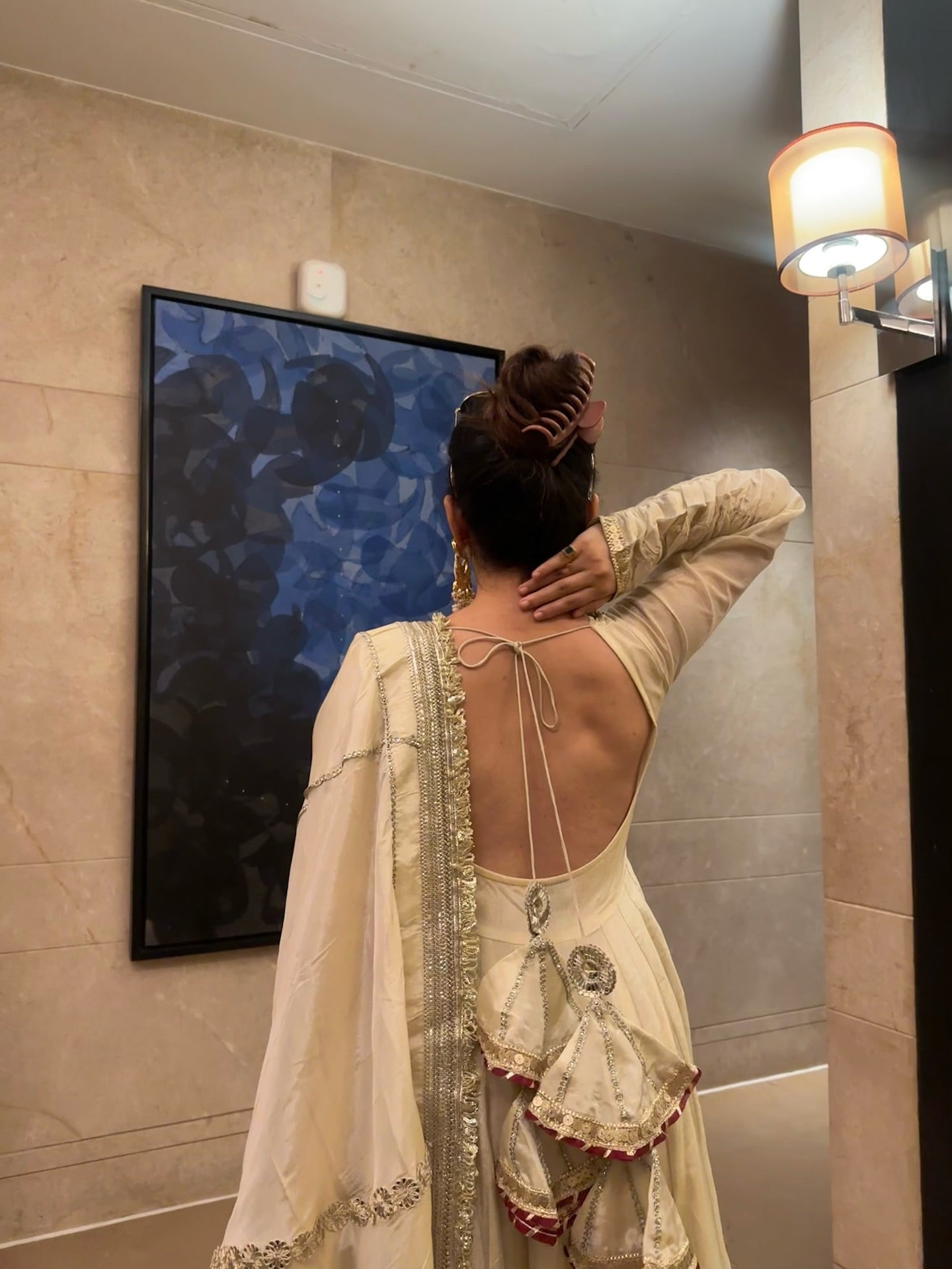 Person taking a mirror selfie wearing a traditional outfit in a bathroom. Beige Dress Festive Anarkali Suit Set For Wedding & Functional Outfit Beige Dress Festive Anarkali Suit Set For Wedding & Functional Outfit Beige Dress Festive Anarkali Suit Set For Wedding & Functional Outfit Beige Dress Festive Anarkali Suit Set For Wedding & Functional Outfit Beige Dress Festive Anarkali Suit Set For Wedding & Functional Outfit Beige Dress Festive Anarkali Suit Set For Wedding & Functional Outfit