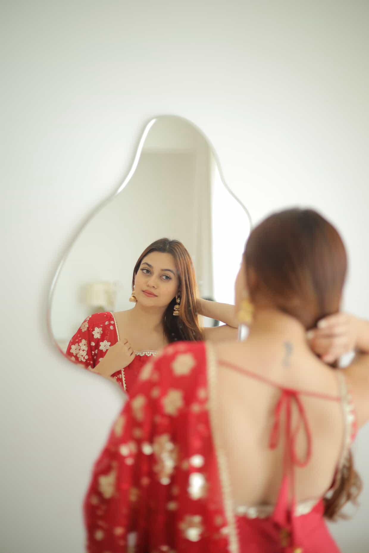 Turn heads at every celebration with this elegant Red Georgette Sleeveless Gown Set, designed for effortless glamour and modern ethnic appeal. Crafted in lightweight georgette fabric, this gown offers a graceful fall and a flattering silhouette, making it ideal for festive occasions, parties, and evening events.